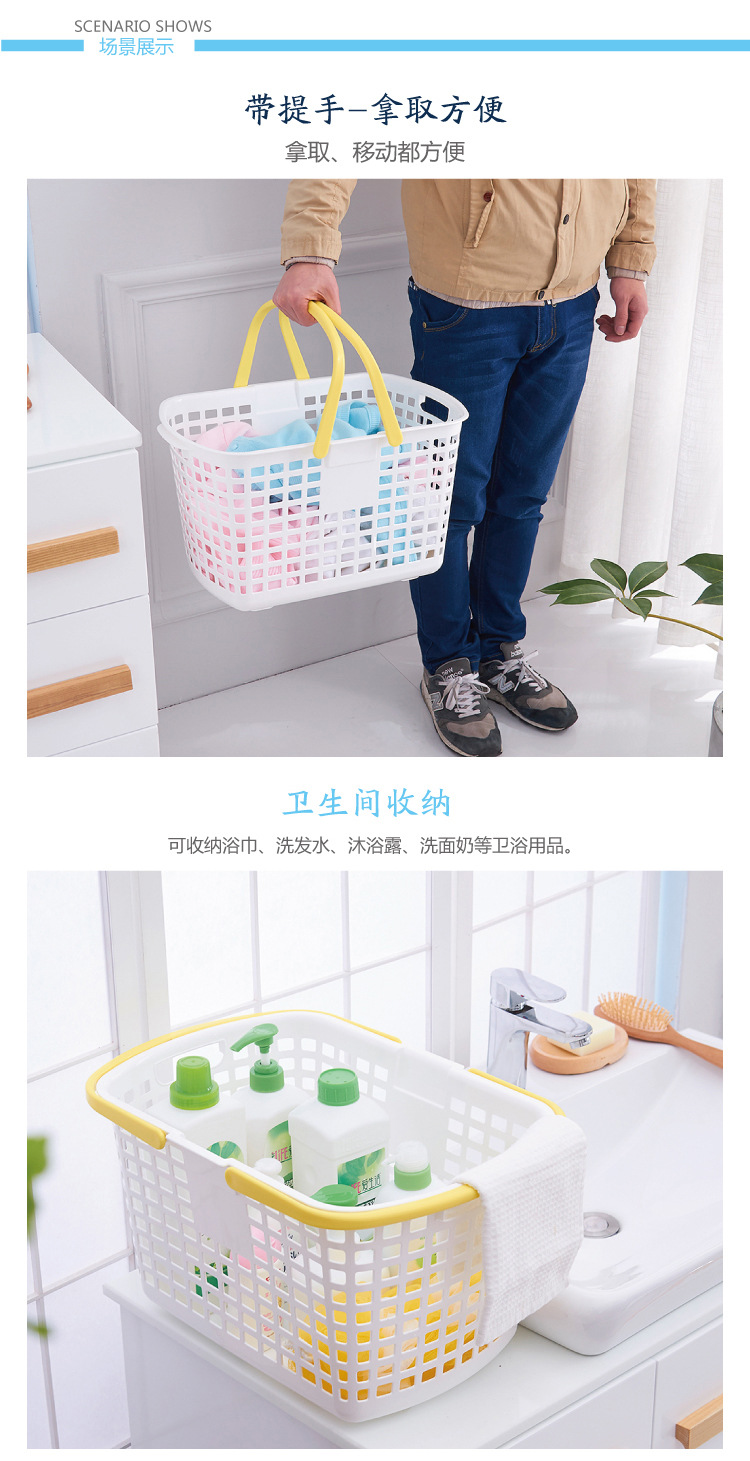 廠家批發(fā)塑料收納籃 手提購物籃 零食店籃子臟衣服收納盒日本禮品