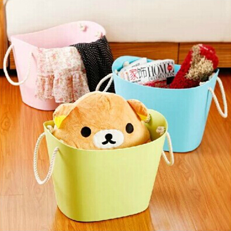 廠家現(xiàn)貨批發(fā)棉繩帶耳塑料籃浴室臟衣籃日式大容量手提塑料收納籃