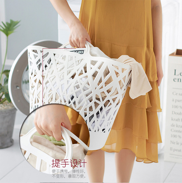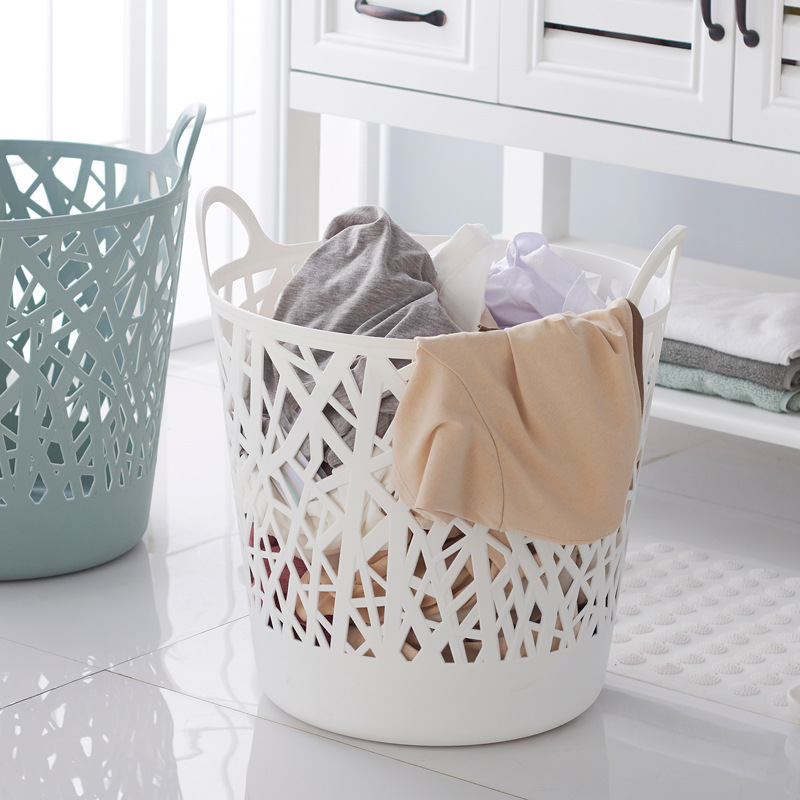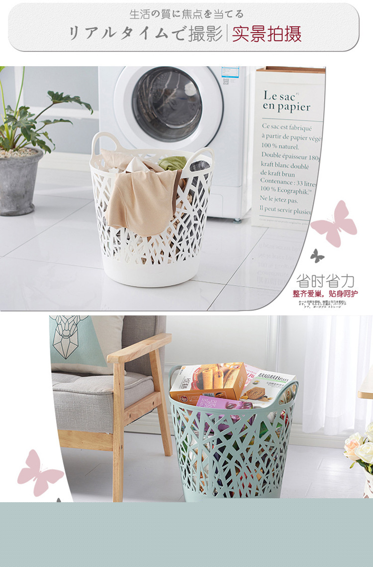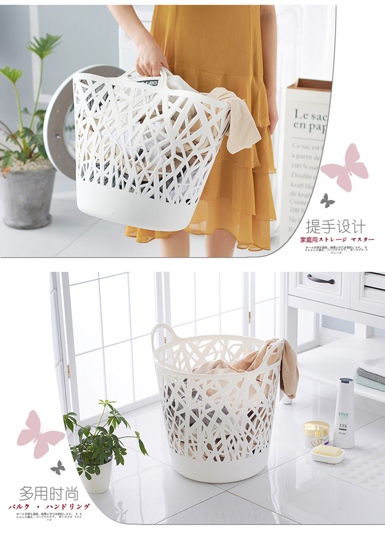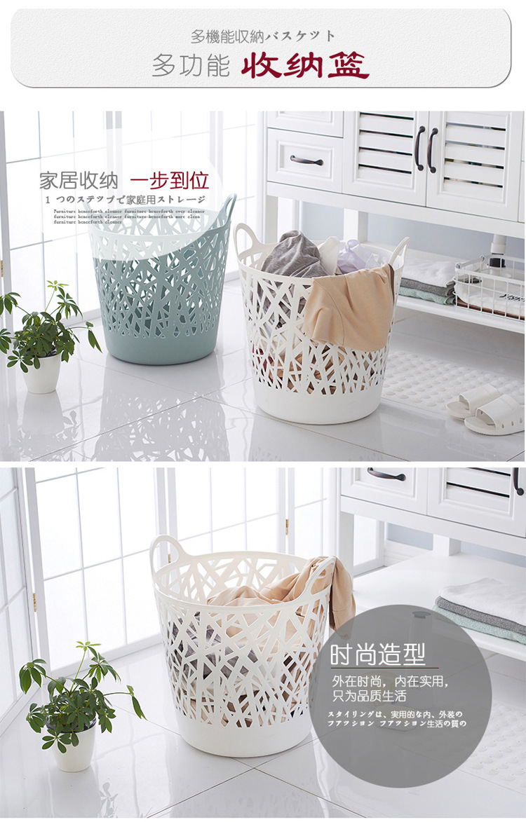 廠家直銷日式塑料收納籃 創(chuàng)意款置物籃 鏤空大號臟衣籃雜物收納筐