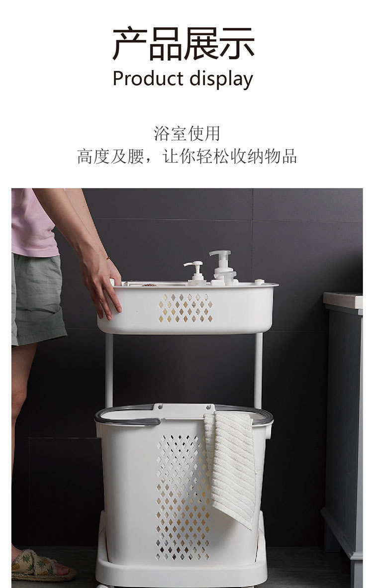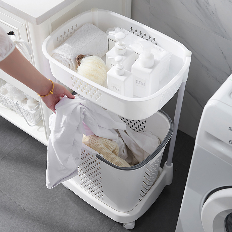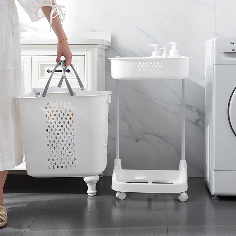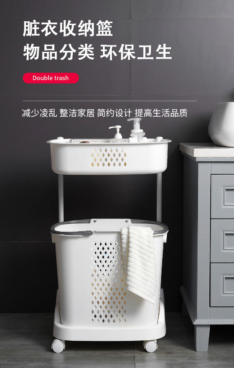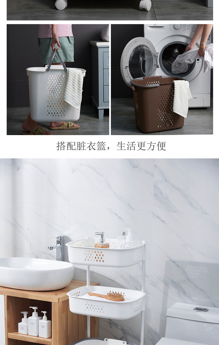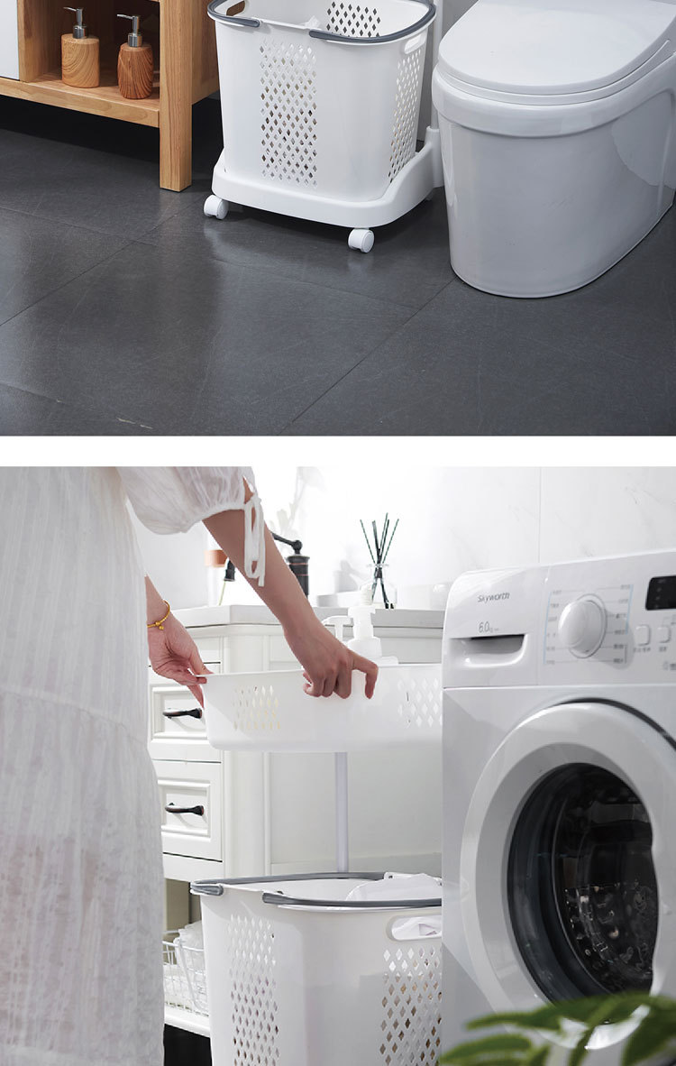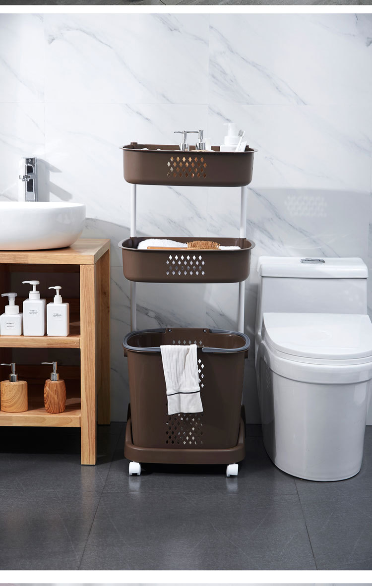 廠家直銷大號(hào)三層臟衣籃 浴室塑料臟衣收納籃 多功能帶滑輪儲(chǔ)物籃