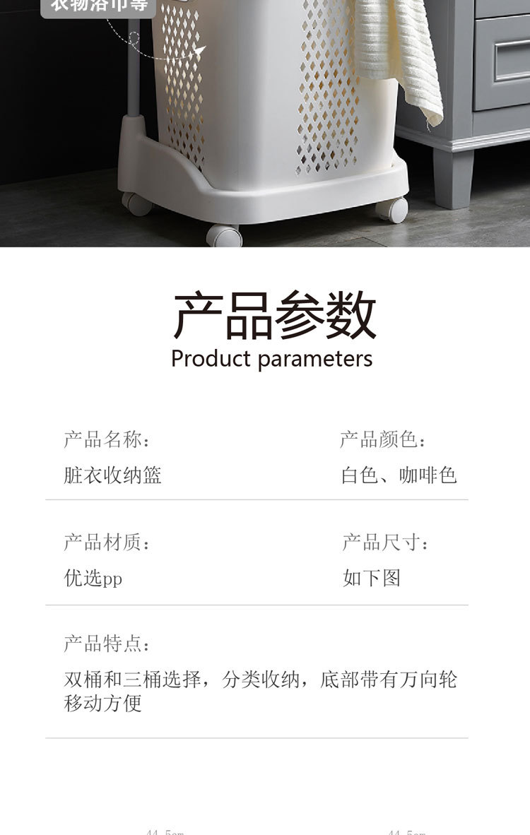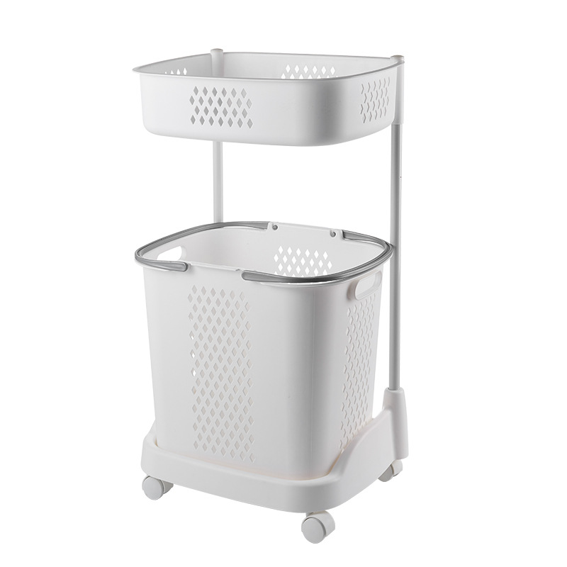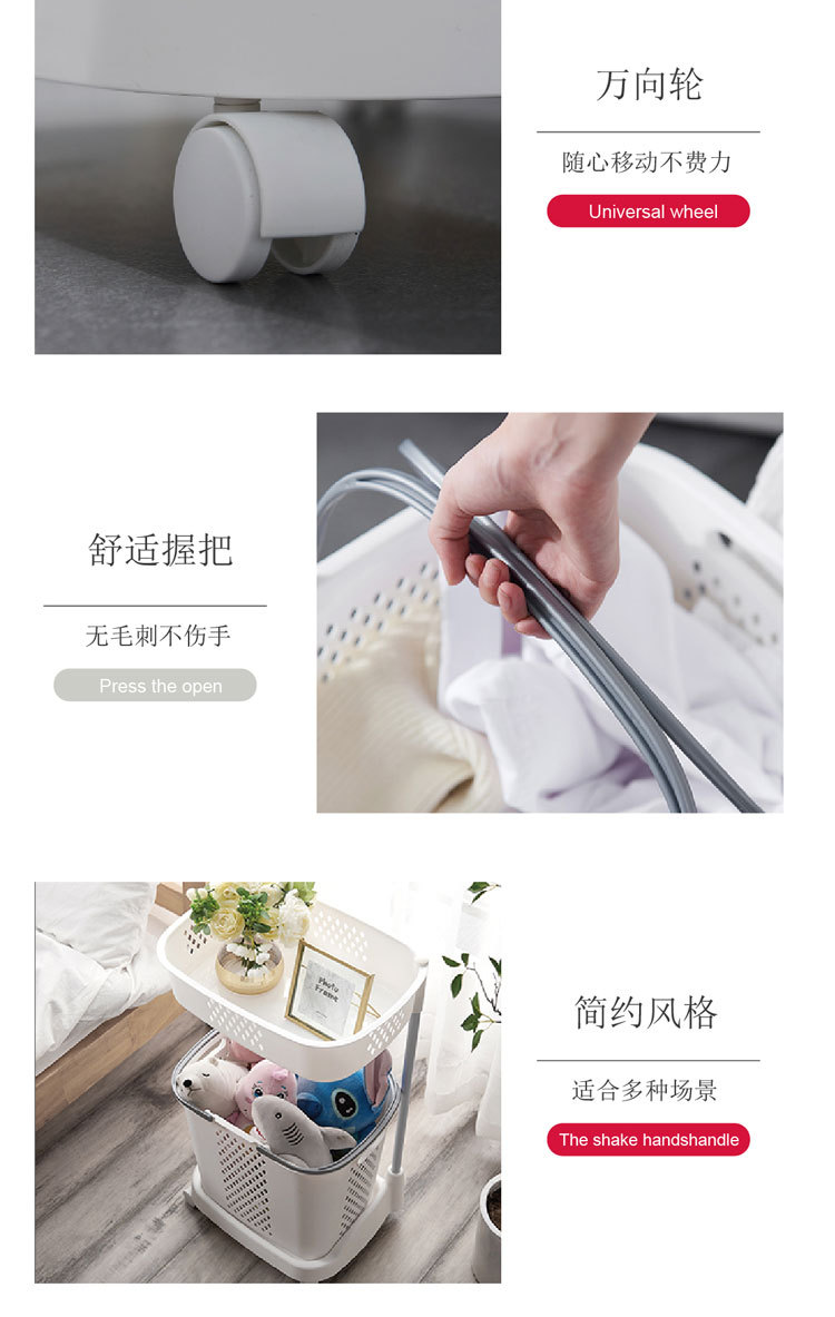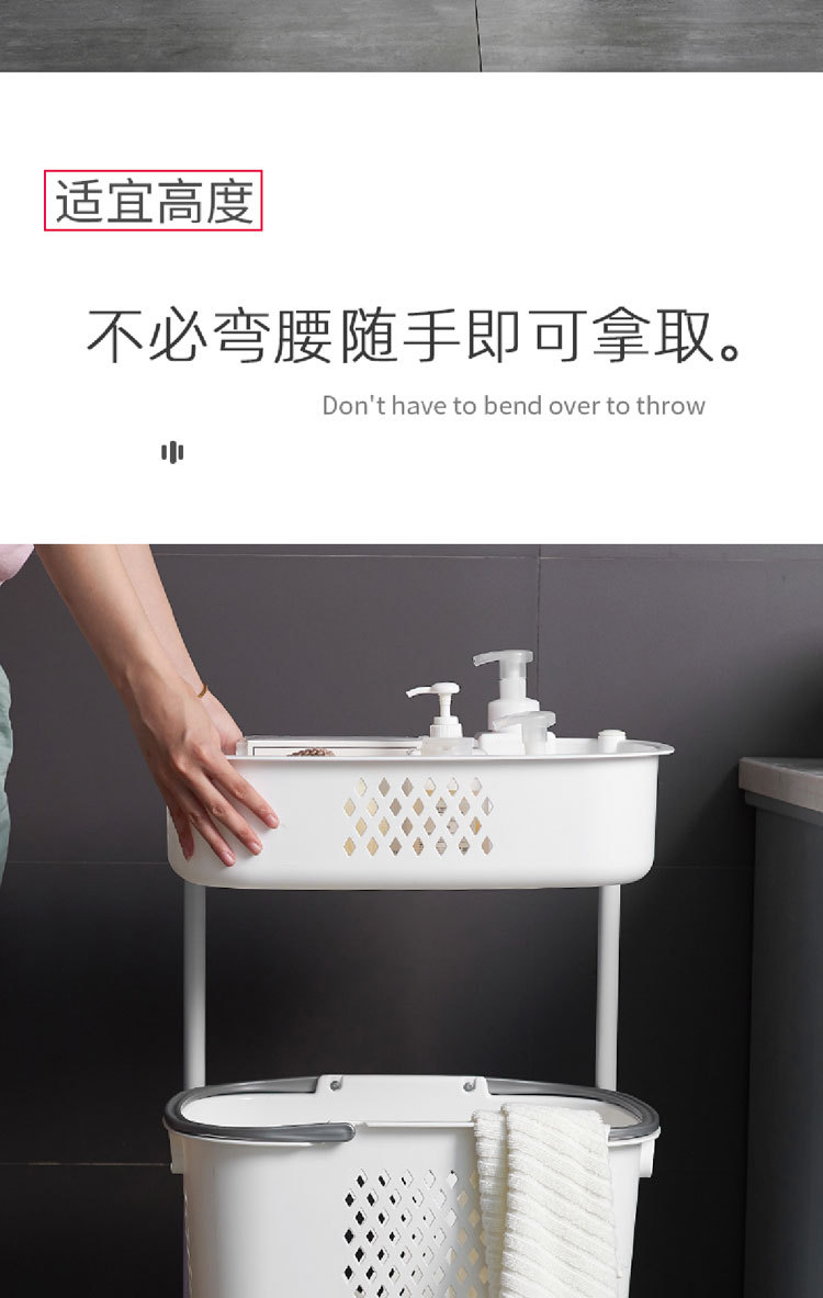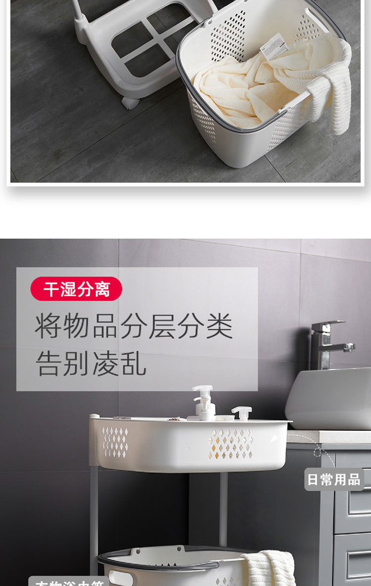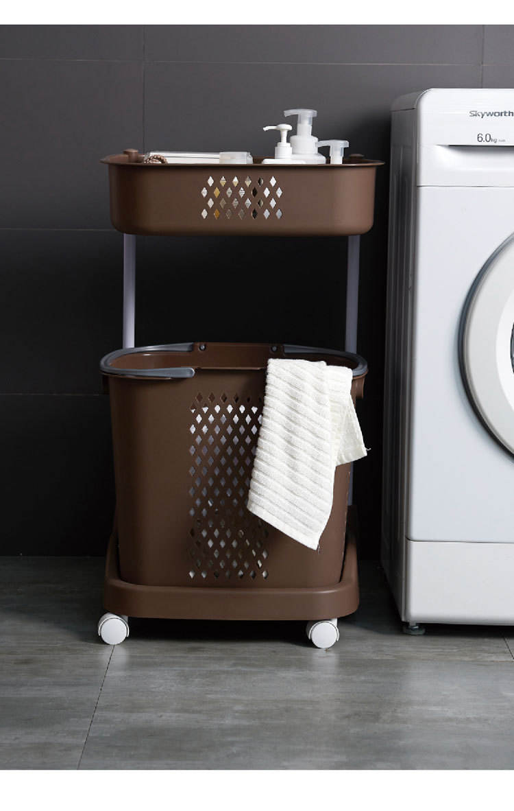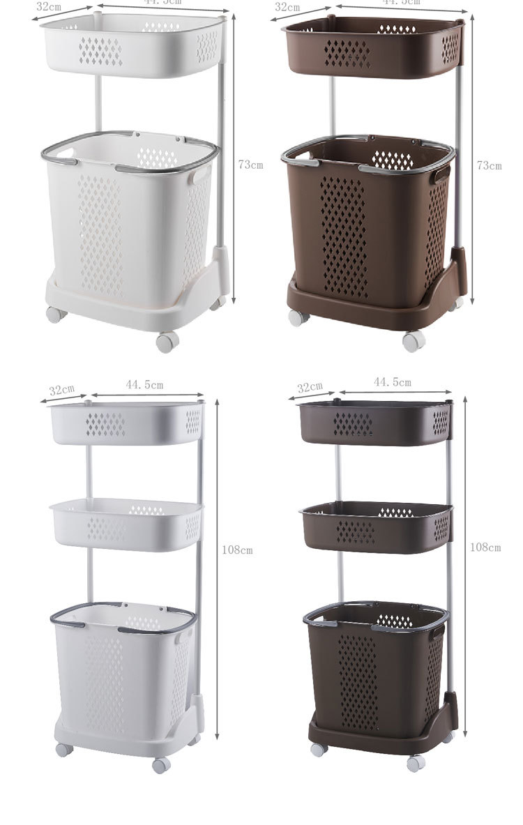 廠家直銷大號(hào)三層臟衣籃 浴室塑料臟衣收納籃 多功能帶滑輪儲(chǔ)物籃