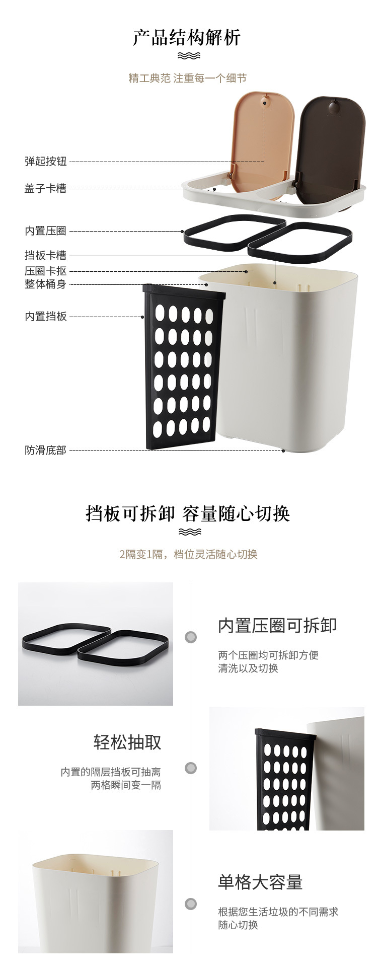 廠家直銷 雙色拼接長(zhǎng)筒形塑料分類垃圾桶 可拆分多功能客廳收納桶