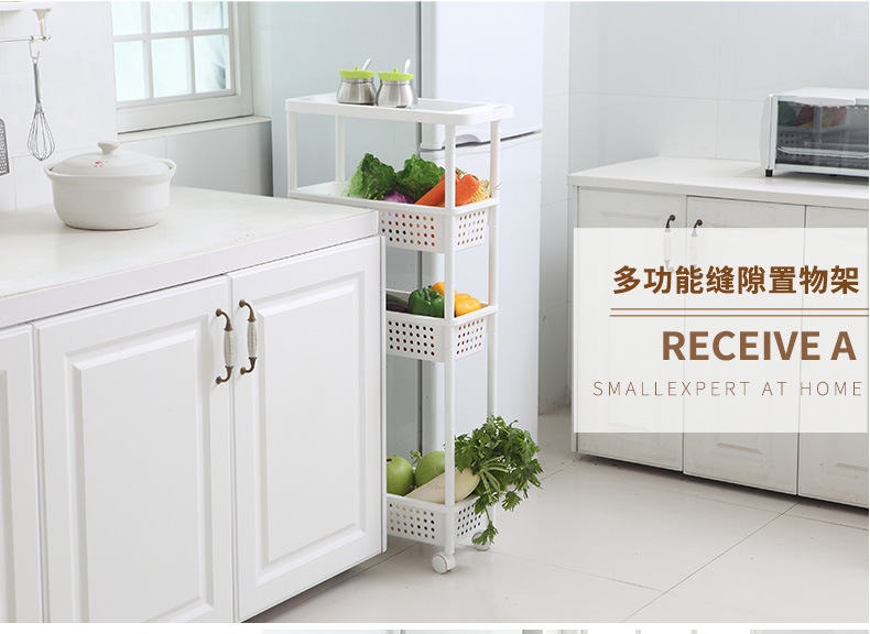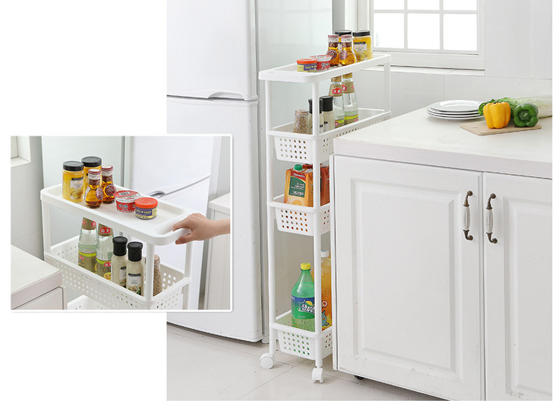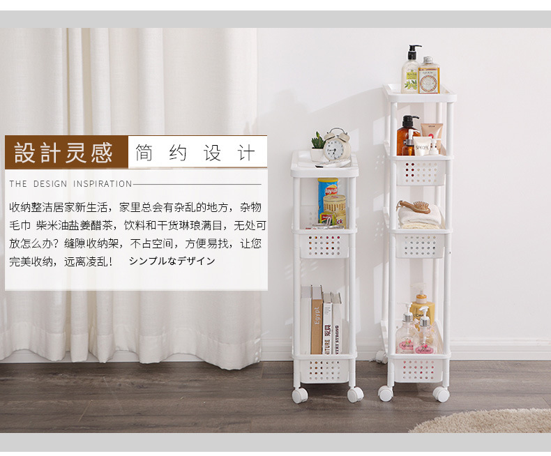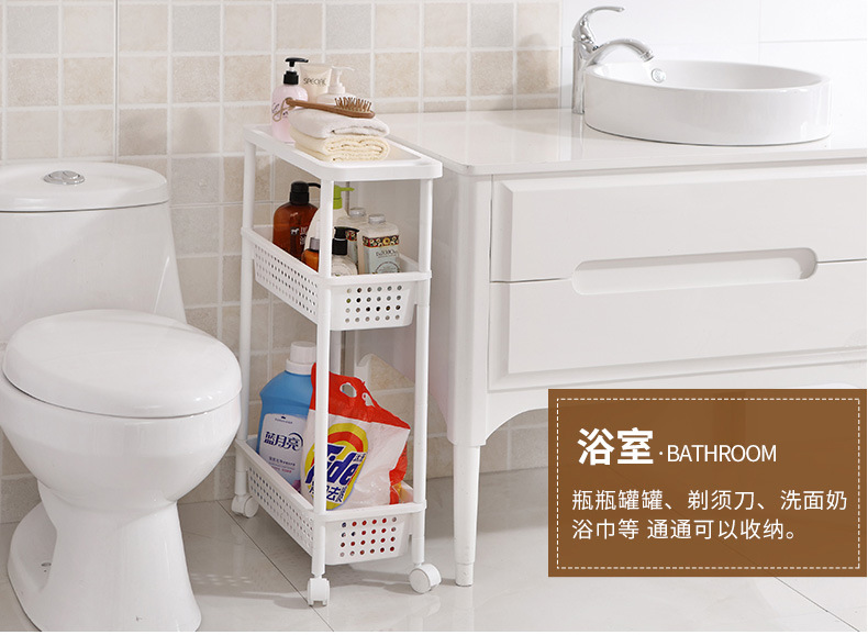 現貨批發(fā)塑料移動收納架 廚房浴室夾縫收納架 縫隙滑輪多層置物架